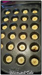 - Preheat oven to 180°C. Grease 30 mini cupcakes pan. To make topping, place brown sugar and 1 tbsp water in a small saucepan over low heat, stirring to dissolve. Divide among prepared cupcake holes, then arrange 1 banana slice in base of each. Set aside.