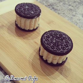2. Place it in between to oreo cookies and put it back to freezer immediately.